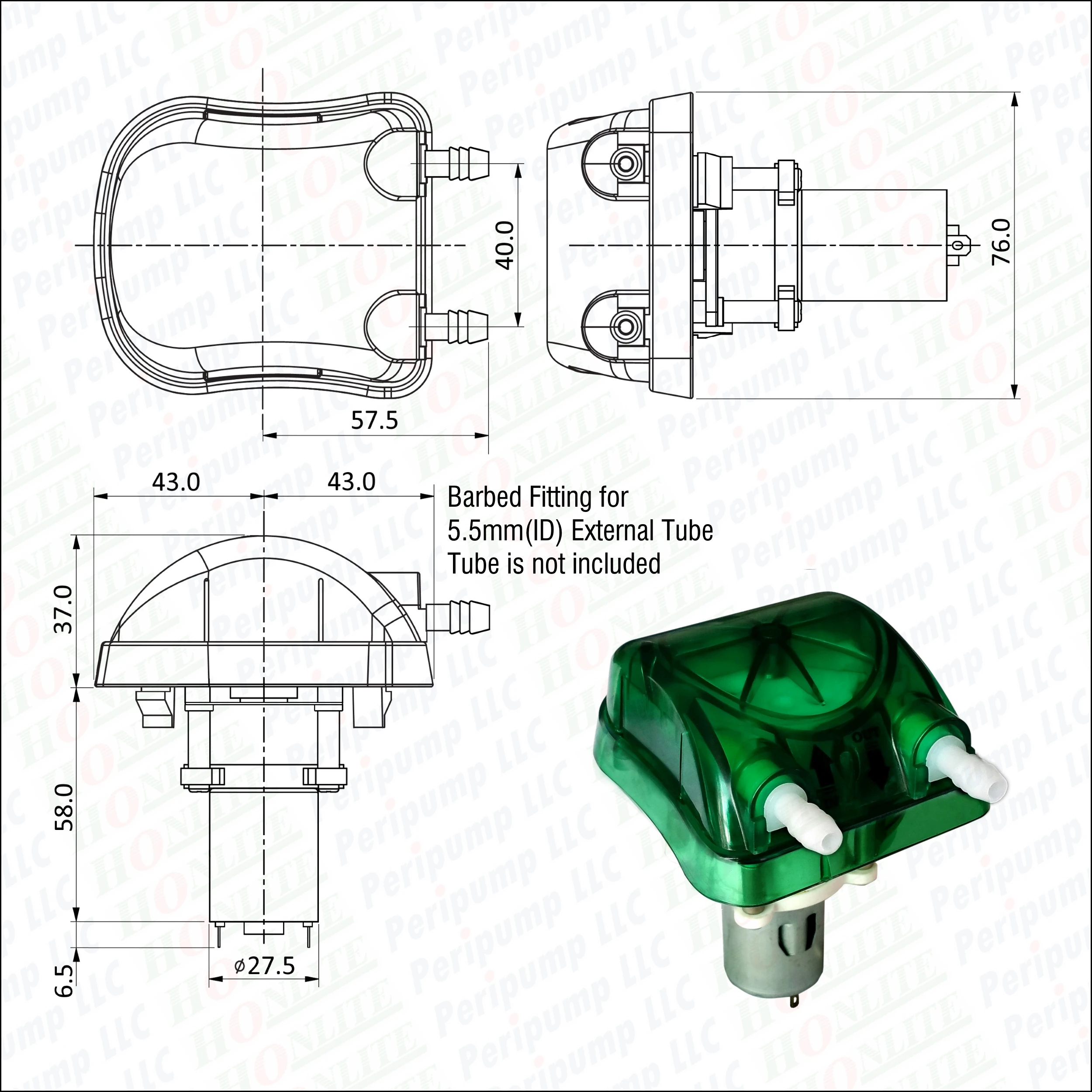 300ml/min 2 Rollers Honlite 24V Peristaltic Pump with Exchangeable Pump Head and PharMed BPT perist