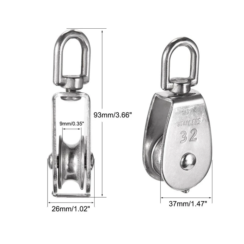 Hot Sale 6 Pack M32 Lifting Single Pulley Roller Loading 551Ibs 304 Stainless Steel Heavy Duty Single Wheel