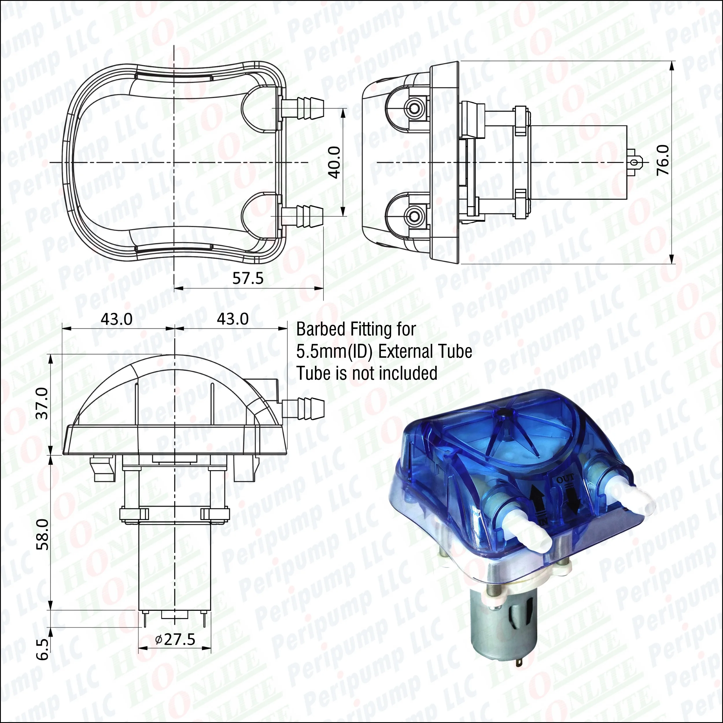 Best Quality 350ml/min 4 rollers 24Vdc Honlite Peristaltic Pump with Exchangeable Pump Head and PharMed BPT Peri