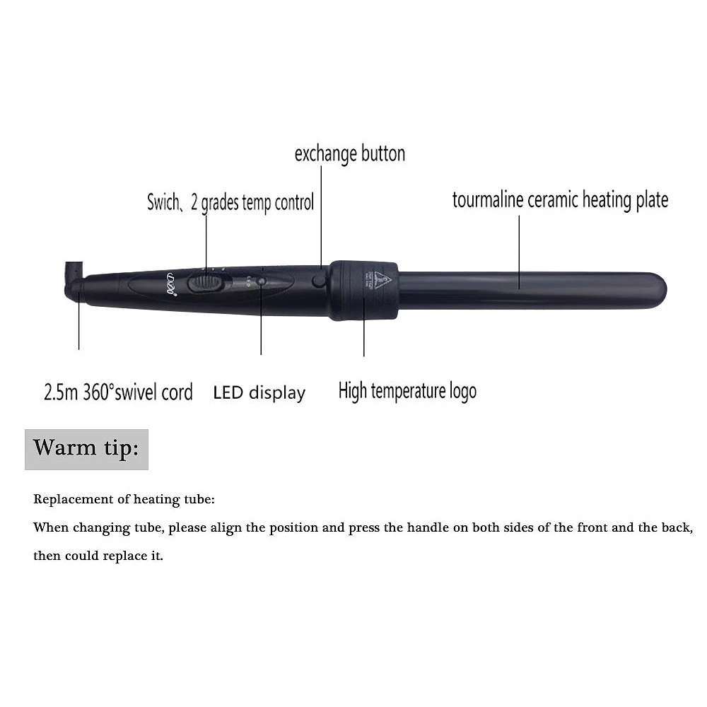 Dodo 3 In 1 Hair Curlers Care Styling Curling Wand Interchangeable 3 Parts Clip Hair Iron Curler Se